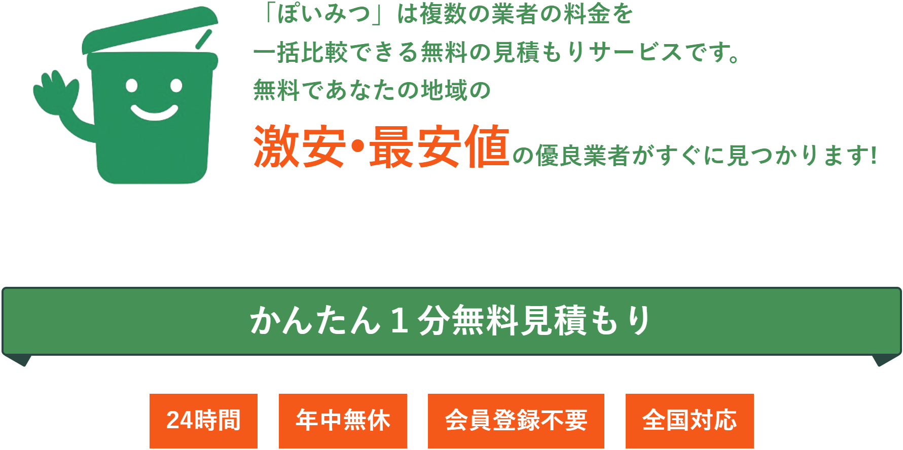 安くて信頼できる不用品回収業者がわからない…そんな悩みをまるっと解決できるのが不用品回収の一括見積もり査定「ぽいみつ」です。