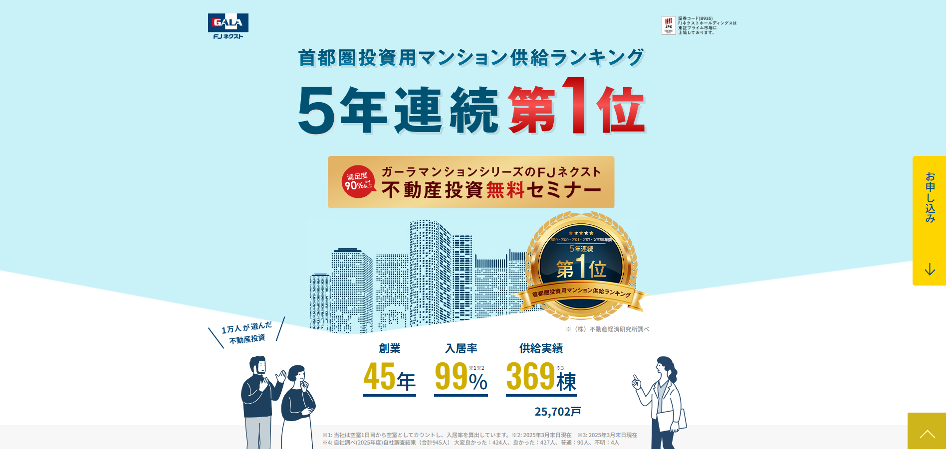 2024年上期首都圏投資用マンション供給戸数No.1 ※不動産経済研究所調べ |
