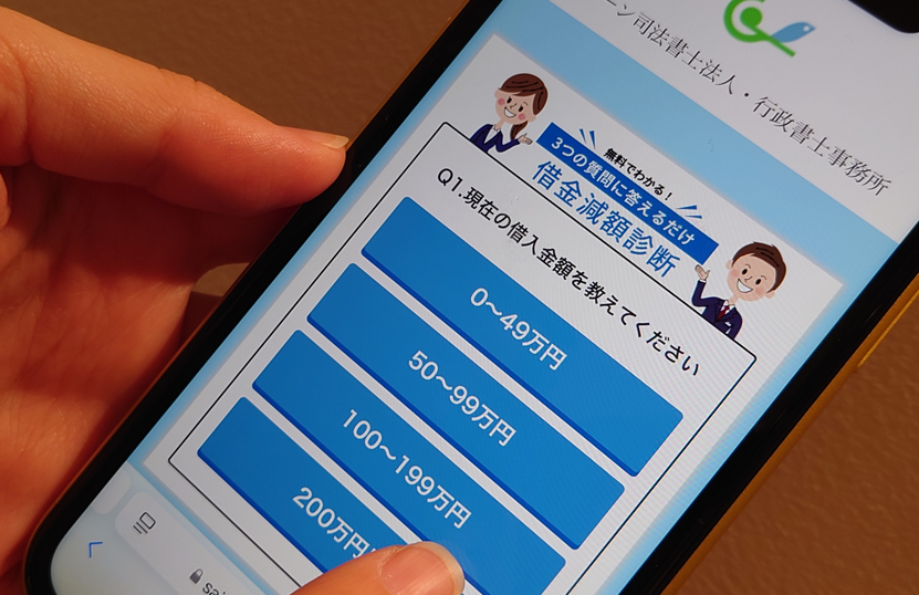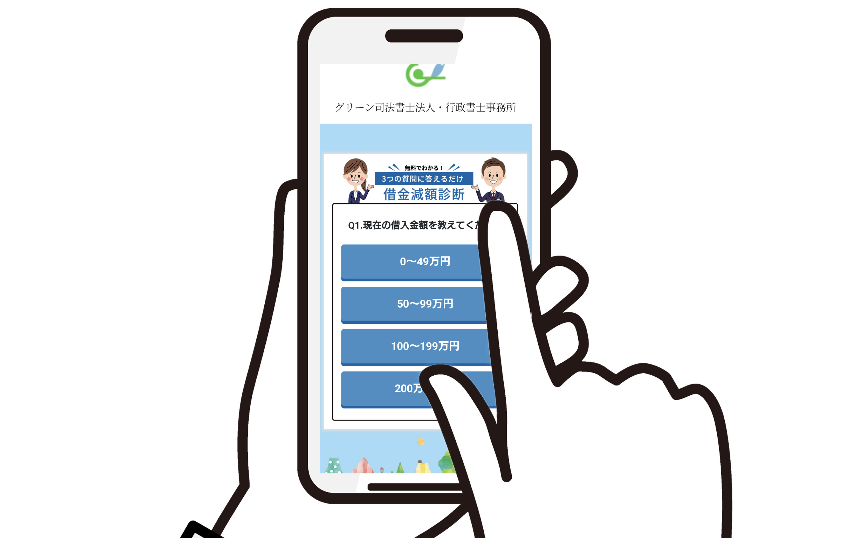 グリーン司法書士法人・行政書士事務所が提供する借金減額診断ツールは、3つの質問に答えるだけで「自分の借金を減らす最適な方法」を診断してくれます。