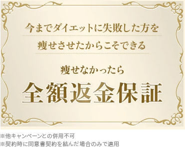 今までダイエットに失敗した方を痩せさせたからこそできる、痩せなかったら全額返金保証