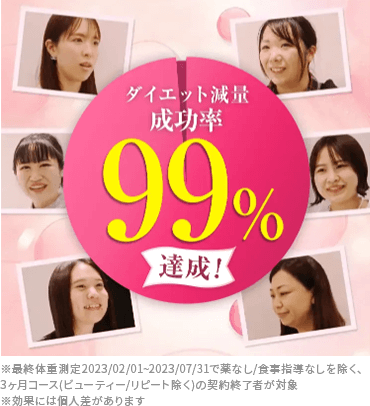 ダイエットの目標達成率は99%とかなり高い実績を持っているところもおすすめ出来る理由です!