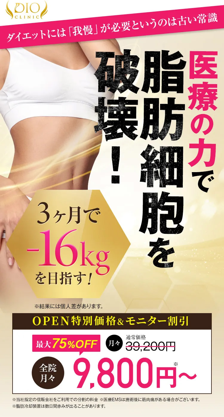 ディオクリニックの脂肪冷却は1回で脂肪量を約20%減