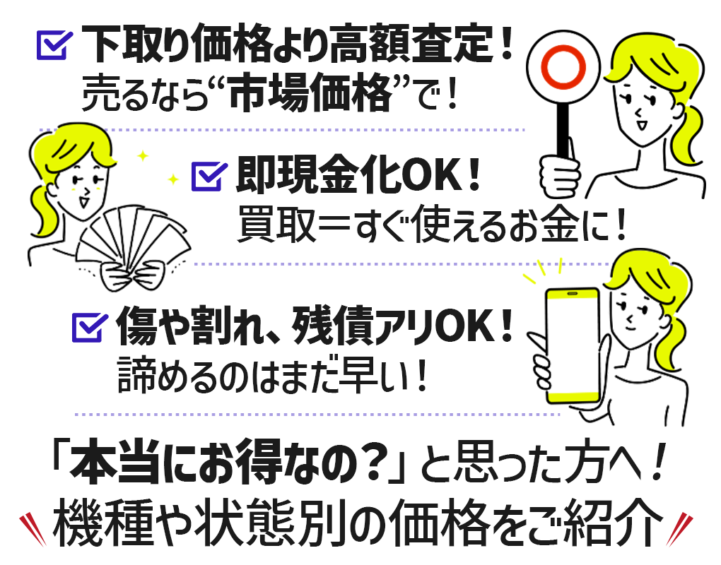| 機種 | 未開封 | キズなし | キズあり | 画面割れ |