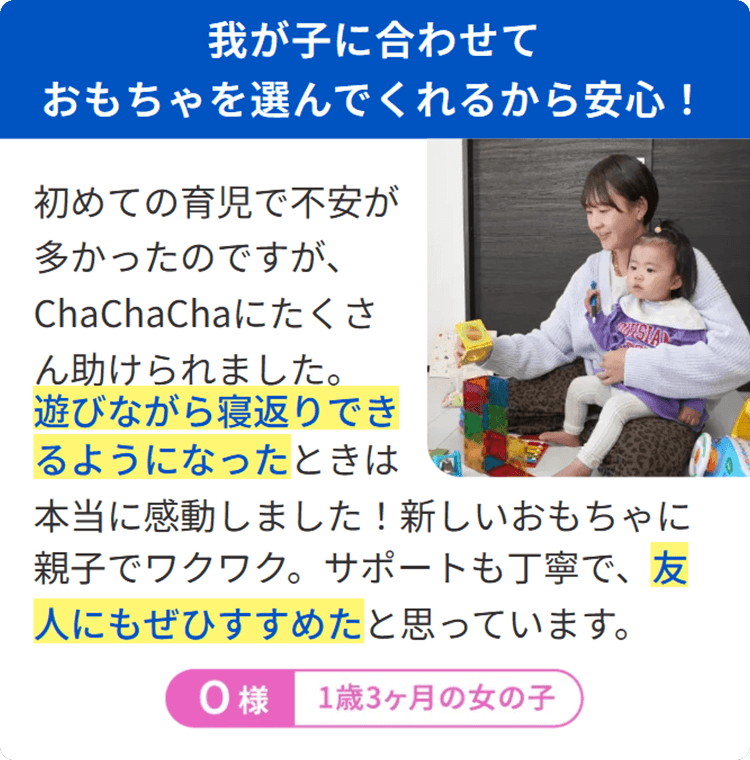 ChaChaChaは試してみたかった知育系からキャラクターまで業界トップクラスの豊富な取り揃えが魅力です!