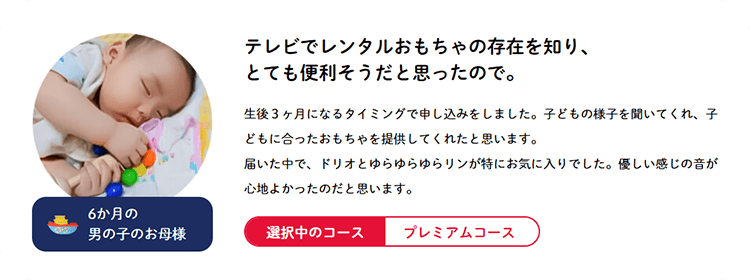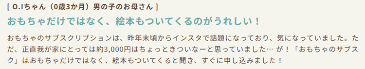 初月1円で気軽に試せる 知育のプロが選定700点以上 とおもちゃの数が豊富 | 6~7点 |