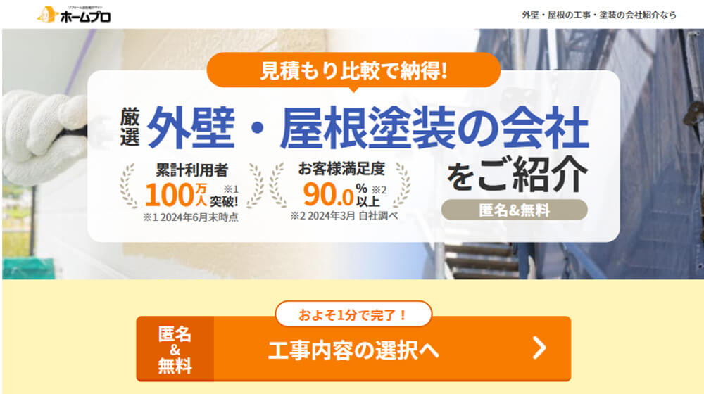 ホームプロなら、独自の厳しい審査を通過した優良会社の中から複数会社の見積もりを比較検討できます!
