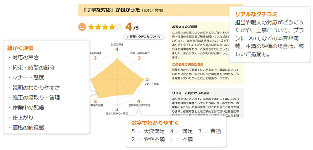 ネットでクチコミを検索すると、誹謗中傷など悪評を見つけるのはたやすいですが、本当に工事をした人が書いたものなのか、真実かどうかもわかりません。