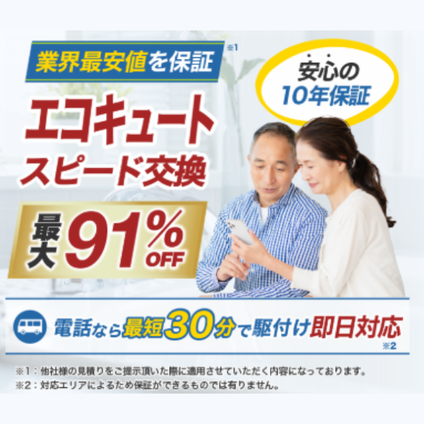 エコキュートの交換をお願いしました。商品保証10年、工事保証15年付いて、他社より安くお願いすることが出来ました。担当者の対応もとても気持ち良かったです。今後別のリフォームも、こちらにお願いしたいと思います。